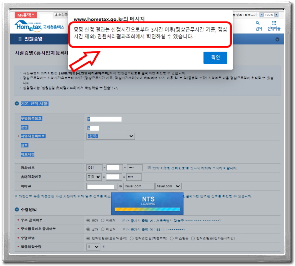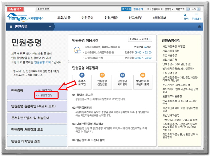 8. 사실증명 (총사업자등록내역) 접수완료 확인
