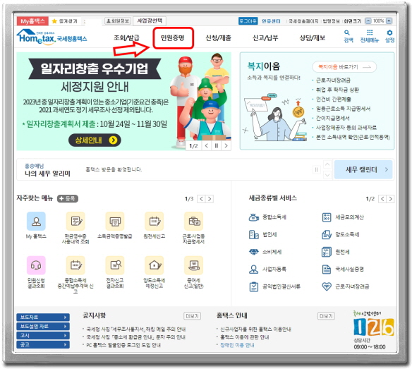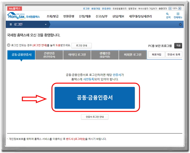 공인인증서가 없으시다면~ 가까운 세무서에서 발급 가능합니다.