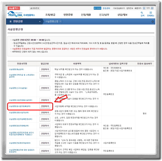 5. 사실증명(총사업자등록내역) 신청하기 "클릭"