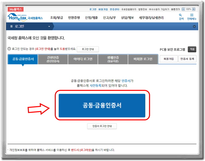 3. 공인인증서로 로인인을 합니다.